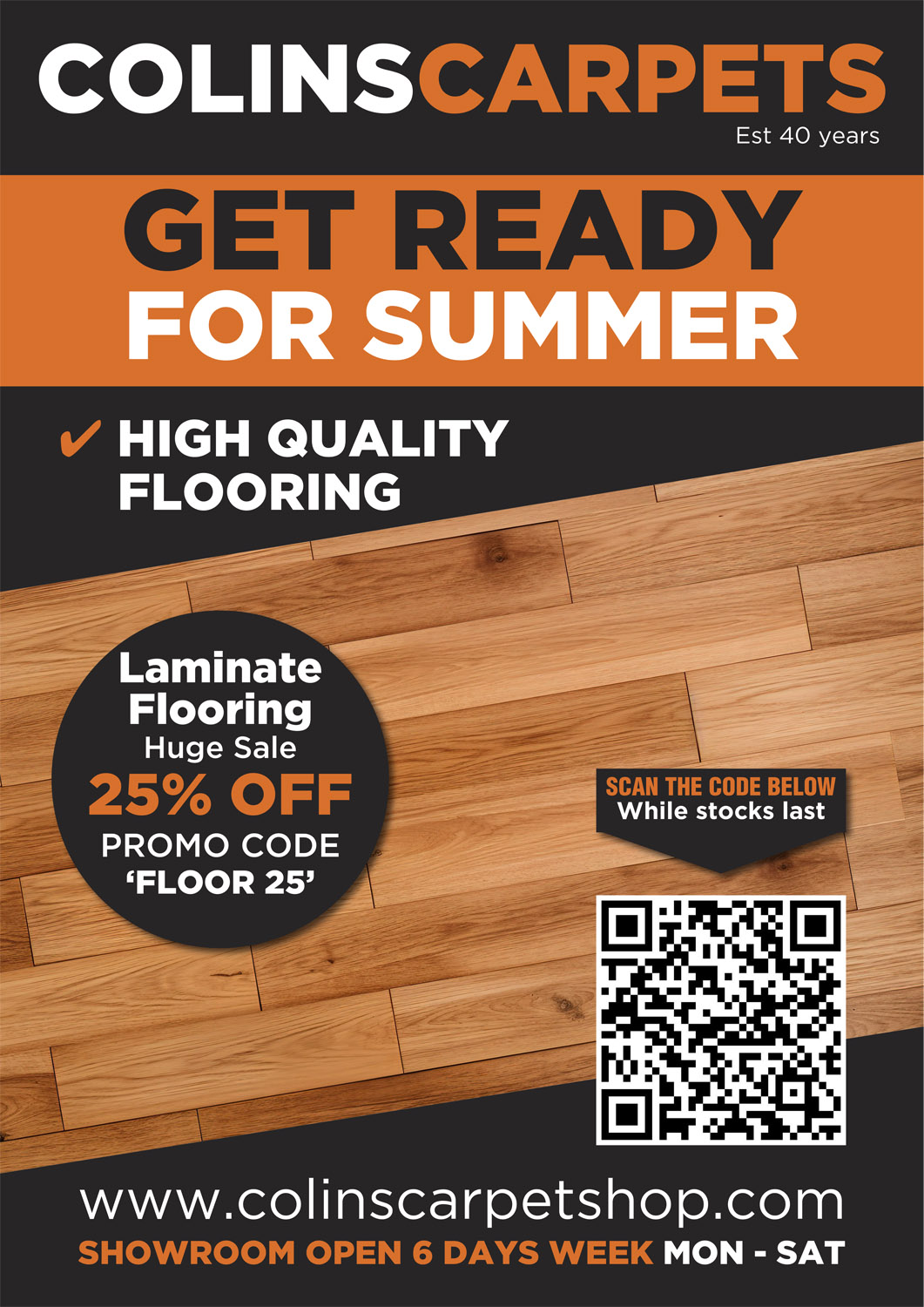 Colins Carpets offer a hugely diverse range of flooring options for your home or business, we supply and fit vinyl, laminate and LVT flooring. Our affordable flooring options are perfect for covering large surface areas for reasonable prices, all while giving your room a modern refreshing aesthetic.